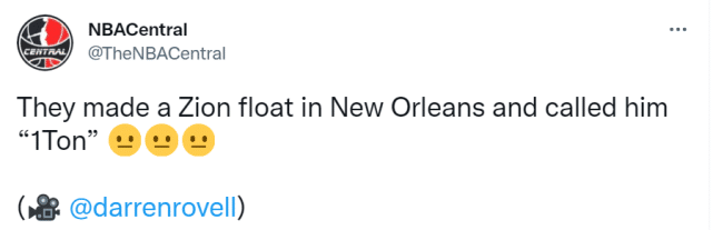 锡安-威廉姆森和鹈鹕的关系已经出现裂痕,新奥尔良当地球迷似乎也开始讨厌他。北京时间2月27日,美媒晒出了新奥尔良街头的一辆彩车,而彩车的主题恰恰是锡安。这辆彩车上,一个卡通版的锡安显得肥硕无比,而且球衣上还有他的新外号:1 ton(1吨)!毫无疑问,这是在调侃锡安无法控制的体重。