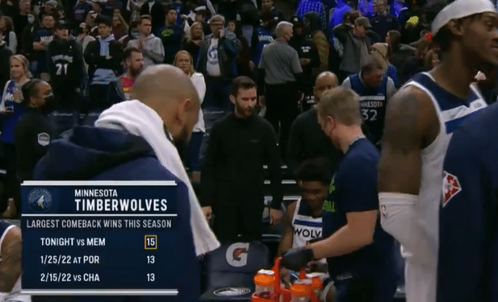 最后阶段,森林狼占据微弱优势,拉塞尔连续上分,但克拉克篮下也连续补篮得分,将比分追到114平。但关键时刻,又是拉塞尔外线飚中三分,帮助森林狼再度领先3分。最后时刻,莫兰特强行三分出手不中,森林狼在主场收下胜利。此时,森林狼主场球迷也已经按捺不住自己内心的激动,纷纷起立鼓掌。