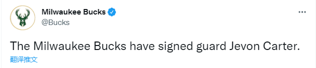 雄鹿官宣签约杰文-卡特