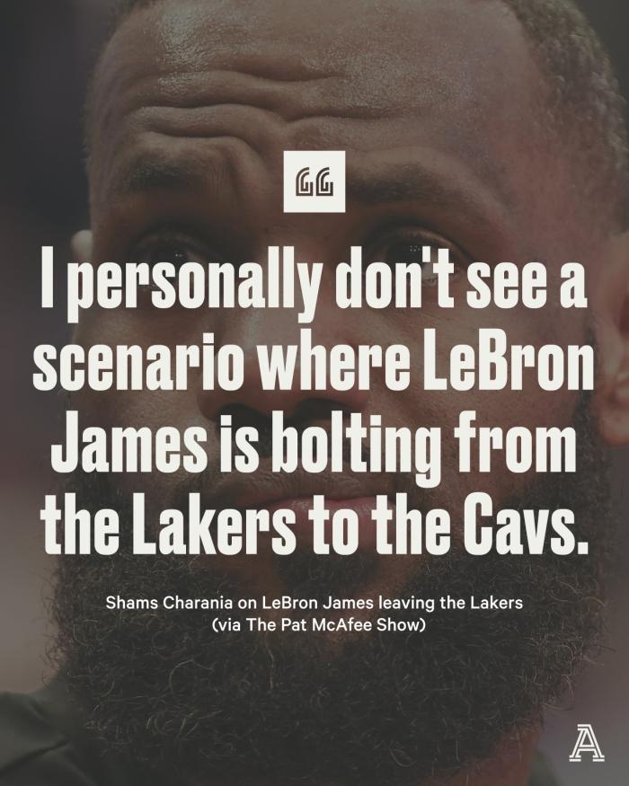 shams还表示:我个人不认为勒布朗-詹姆斯会从湖人跳槽至骑士,从我被告知的一切来看,他的计划是在可预见的未来成为一名湖人。