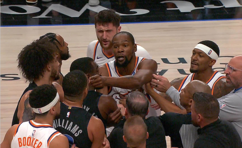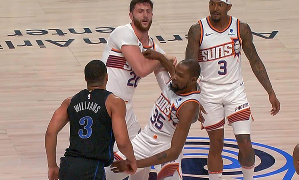 在太阳和独行侠比赛打到第一节8分02秒,格威绕掩护推倒杜兰特,格威上前挑衅并且欲从杜兰特腿上跨过去,见状努尔基奇为杜兰特抱不平,一把推飞格威引冲突,格威推搡努尔基奇,杜兰特则推开格威,杜兰特更是指着格威狂喷。