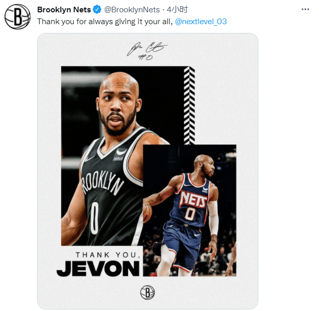 篮网官推晒出杰文-卡特身穿篮网0号球衣赛场照,配文写道:谢谢你一直全力以赴@杰文-卡特;本赛季杰文-卡特为篮网出战46场,场均能够贡献3.6分1.5篮板1.0助攻,年薪是366万美元,下赛季年薪是392万美元;26岁杰文-卡特被裁又成为自由球员。