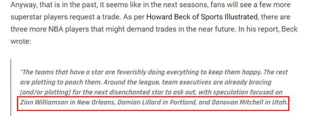 米切尔的情况不同,爵士比开拓者拥有更好的阵容佩珍,但米切尔和戈贝尔之间的化学反应令人担忧。他俩似乎总是在常规赛表现尚可,但到了季后赛就走下坡路。多个消息源透露,两人之间的关系并不好,对于一支想要冲冠的球队来说,双核不能齐心协力,确实问题不小。另外,米切尔想要去一个更大的市场,而盐湖城显然不是理想之选。