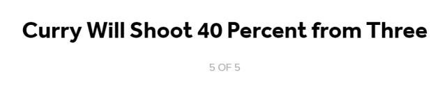 预测5:库里本赛季三分命中率达到40%
