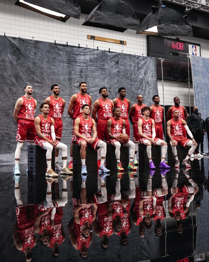 来源:JRS直播网02-21 11:26JRS直播网02月21日讯 ,NBA2022年全明星周末最后一天,万众瞩目的全明星正赛来了,赛前詹姆斯队和杜兰特队拍摄定妆照和合影,杜兰特因祖母去世而缺席,杜兰特队玩疯了,恩比德、特雷-杨等球星在更衣室中赌博,维金斯等人看牌凑热闹。