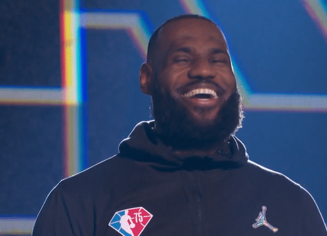 詹皇最后一个亮相开怀大笑!撒镁粉点燃球馆,库里笑着回应嘘声