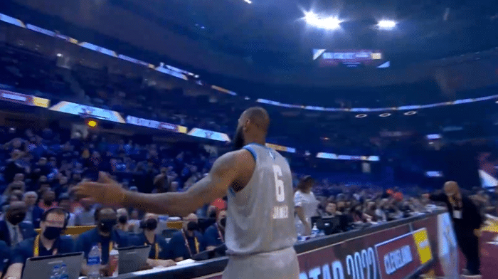 正赛开打之前,詹姆斯身穿6号球衣,站在技术台前抛洒镁粉,这是詹姆斯的经典开场动作;今年全明星周末,詹姆斯之前曾表示他重返骑士的大门并没有关闭,还表示生涯最后一年想和布朗尼一队。