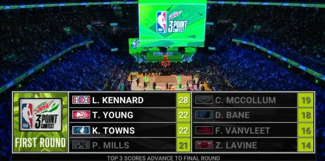 杀进决赛的是卢克-肯纳德、卡尔-安东尼-唐斯和特雷-杨,其他5名球员被淘汰出局。