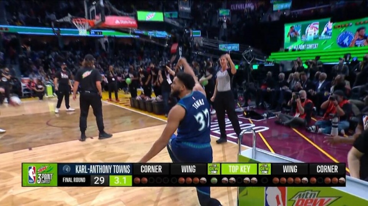 2022NBA全明星三分大赛:爆冷!唐斯29分夺冠!