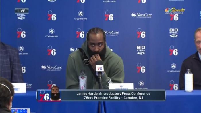 来源:JRS直播网02-16 15:49JRS直播网02月16日讯 ,哈登正式加盟76人的第二天,第二个训练日,也是他的第一个媒体日,面对记者回答相关的问题!