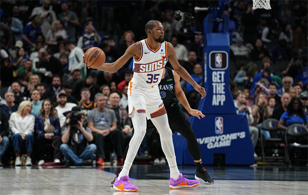 末节,东契奇继续带队追分,杜兰特、比尔和布克得分回应,迪奥普输送三分,杜兰特大帽东契奇,布克命中追分三分,4分48秒太阳117-94再次领先到23分,之后基德撤下东契奇,只能提前认输,太阳三巨头早早打卡下班。