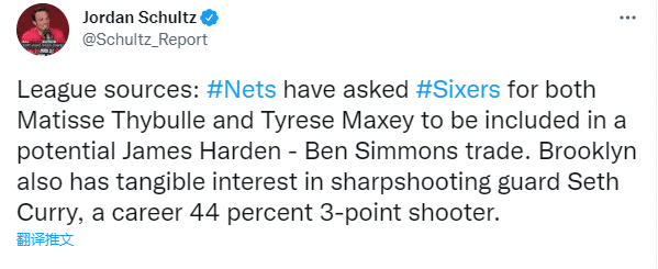 据美记Jordan Schultz报道,篮网在哈登与本西的潜在交易中寻求得到塞布尔与马克西,同时,篮网也对赛斯-库里感兴趣。