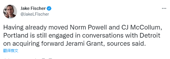 据BR名记Jake Fischer报道,开拓者仍然在与活塞队进行交流,他们想要得到前锋杰拉米-格兰特。