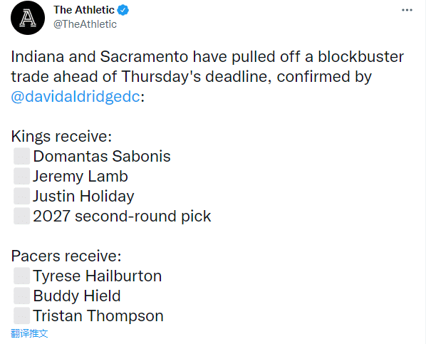 步行者把小萨博尼斯、杰里米-兰姆与贾斯汀-霍勒迪以及一个2027年次轮选秀权送到国王,从国王得到哈利伯顿、希尔德与特里斯坦-汤普森;步行者创造价值600万美元的交易特例,国王创造400万美元的交易特例,如此重磅交易引热议。