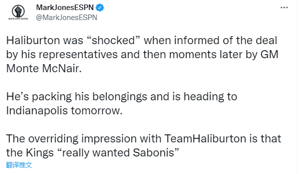从国王总经理那里确认被交易之后,哈利伯顿本人感到震惊,他正在收拾行李,明天将会前往印第安纳向球队报到;国王官方社媒评论区被攻陷,无数球迷不满国王交易哈利伯顿;对于这笔交易,ESPN评级国王D+,步行者A。
