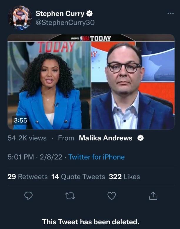 对于国王和步行者这笔交易,勇士球星库里吃瓜被抓,转发关于这笔交易的相关报道,之后库里赶紧删除推特动态。
