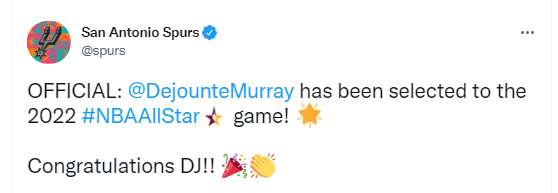 穆雷正处在生涯第5个赛季,本赛季他场均19.6分9.2助攻8.24篮板2.06次抢断。25岁的穆雷目前排在抢断榜的首位,场均助攻位居第四。他的10次三双,目前排在本赛季第二,这也是马刺球员的单赛季纪录。马刺官方也晒图祝贺。
