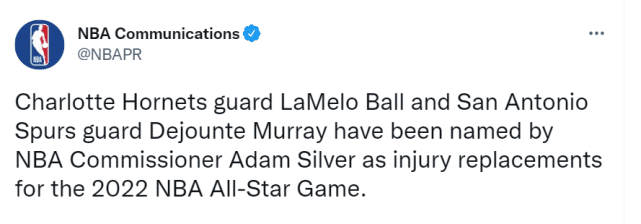 官宣!三球穆雷顶替杜兰特追梦入选全明星赛 两人生涯首获殊荣