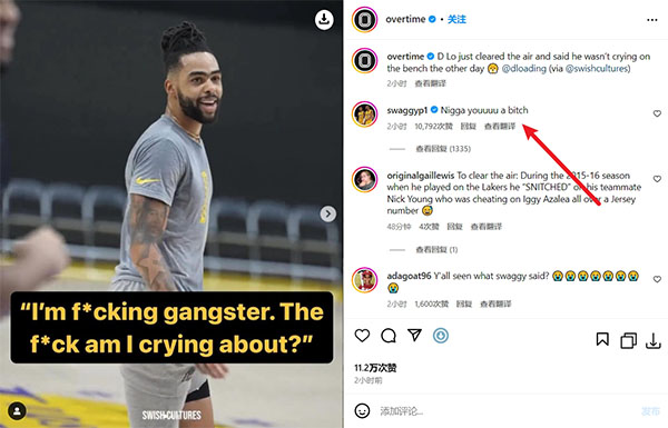 看到拉塞尔的言论,前NBA球员尼克-杨在评论区写道:你是个贱人。