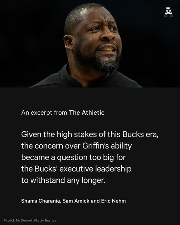 对于被小雄鹿解雇,格里芬本人表示:我很感激雄鹿队给我的机会。你不能控制一切,我对我们所做的工作感觉很好。我感谢教练组的辛勤工作。我一直想成为这个联盟的主教练。我再也找不到更好的阵容了。我执教了字母哥、利拉德、米德尔顿和大洛。梦想成真了。希望我能再次尝试,但总的来说,我很感激。