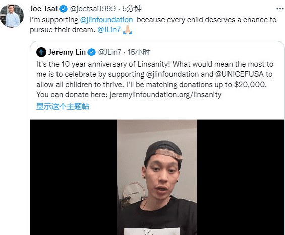 林疯狂10周年!林书豪号召给基金会捐款,篮网老板蔡崇信支持