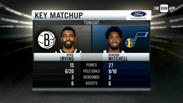 末节爵士牢牢掌控比赛,由于篮网落后太多,欧文不在上场,提前一节投降放弃,最终篮网惨败爵士,耻辱惨败还遭遇赛季最长的7连败;米切尔因脑震荡连续缺席8场,复出首战10投8中、三分7中6轰下27分6助攻,表现完胜欧文。
