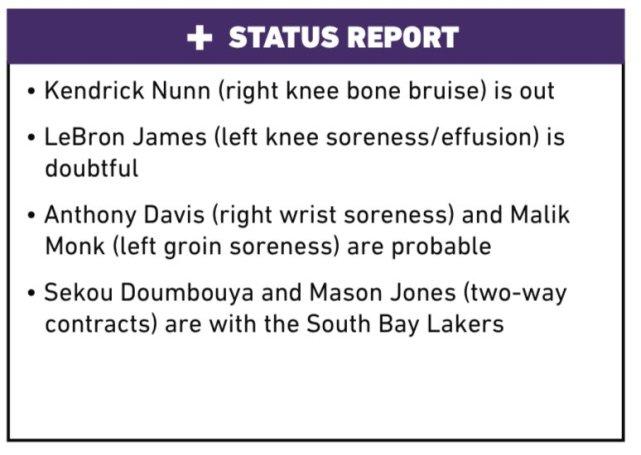 一般情况下,列为doubtful的球员很难上场,此前沃格尔曾表示詹姆斯消肿前不会复出,从目前情况来看,他的膝盖肿胀问题依然存在。浓眉和蒙克的问题不大,列为probable的球员一般都会上场。