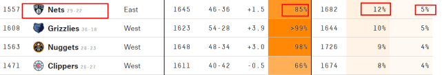 至少美媒FiveThirtyEight并不看好他们。在他们最新公布的夺冠概率排名中,篮网的夺冠概率只有5%,而目前夺冠概率排名第一的是太阳,夺冠概率达到20%。另外,他们认为篮网有85%的概率打进季后赛,12%的概率打进总决赛。你们认为本赛季的总冠军是哪支球队?欢迎留言发表见解。