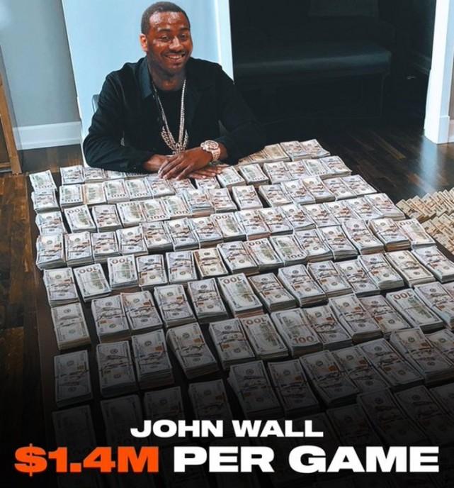 沃尔打一场球赚140万美元!美媒晒神图感慨:72场薪水超过1亿