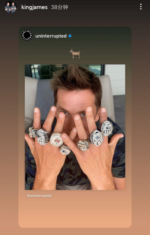 羡慕吗?詹姆斯转发布雷迪戒指照,NFL传奇已拿到7个冠军