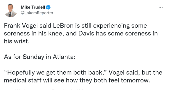 湖人缺少詹眉有多难?休战胜率变化曝光!沃帅:希望他俩下场复出
