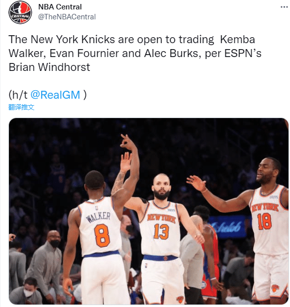 尼克斯把肯巴-沃克、富尼耶和亚力克-伯克斯摆上货架,目的是想给年轻人更多的上场机会;尼克斯拒绝交易奎克利,很多询价奎克利的电话都被纽约一口回绝。