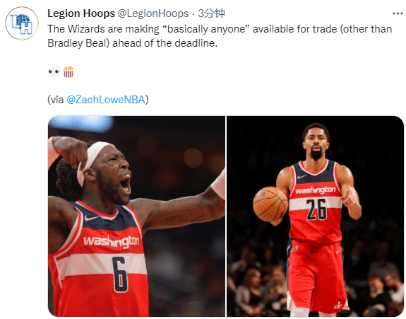 据名记Zach Lowe报道,除了比尔之外,奇才队其他球员基本上都可以被交易,奇才没有兜售比尔,丁威迪、库兹马、八村塁等球员都是交易筹码。