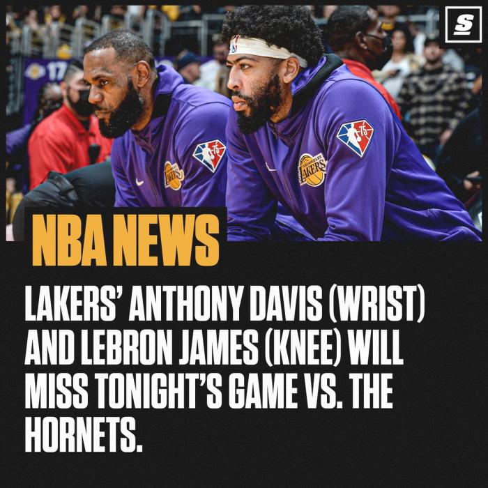 另外值得一提的是,一周前ESPN把湖人与黄蜂的比赛该为全美直播,取代了老鹰的比赛,可今天詹姆斯和浓眉两大巨星都因伤无法出战。
