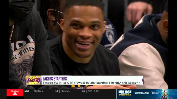 威少两次三分出手都打铁不中,造犯规罚球贡献3分,可湖人主力挖的坑太大,早早落后到15分;之后湖人替补阵容填坑,安东尼、贝兹莫尔和里夫斯为湖人输送火力,进攻总算有些起色了,湖人首节21-31落后10分。