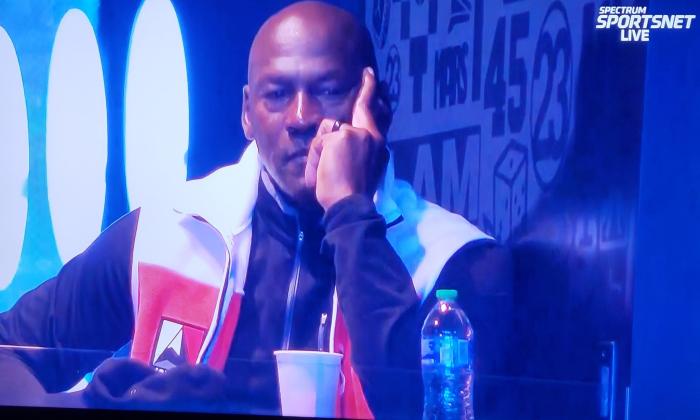 詹姆斯坐在场边观战,一脸愁容,更是愁得直挠头。
