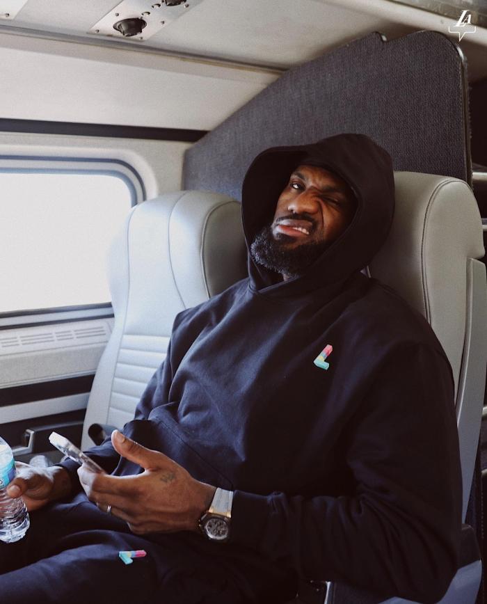 詹姆斯身穿一套深色的连帽运动装,穿着拖鞋坐在火车里,一手拿着手机,一手拿着矿泉水,冲着镜头露出歪嘴的霸气表情;对于詹姆斯的伤情,医学专家Evan Jeffries分析,湖人迎来背靠背,詹姆斯因膝盖酸痛被列为出战成疑,无论如何,他都会在赛前进行测试,我想如果他有任何的不适,他将不会参加比赛。