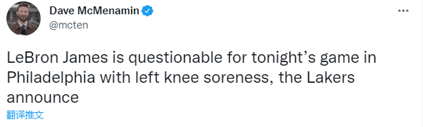 上一场湖人击败篮网,詹姆斯没有在伤病名单上,而今天对阵费城,老詹因伤被列为出战成疑,明天将客场背靠背对阵黄蜂,也许詹姆斯真的该轮休一场了。