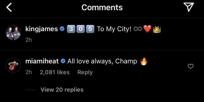 热火官方在评论区回应:永远的爱,总冠军!