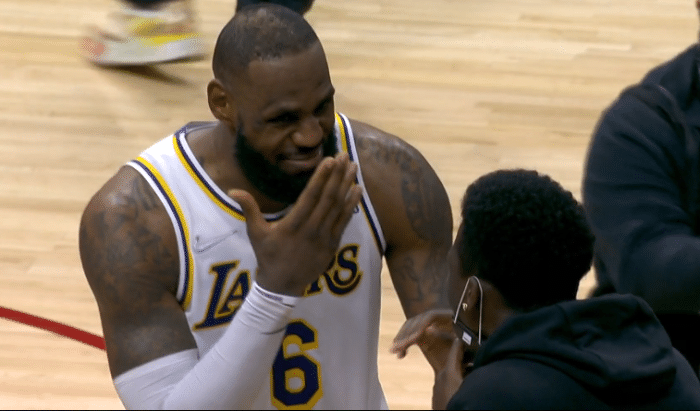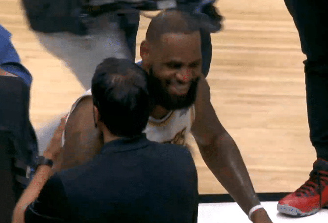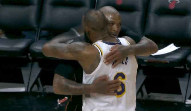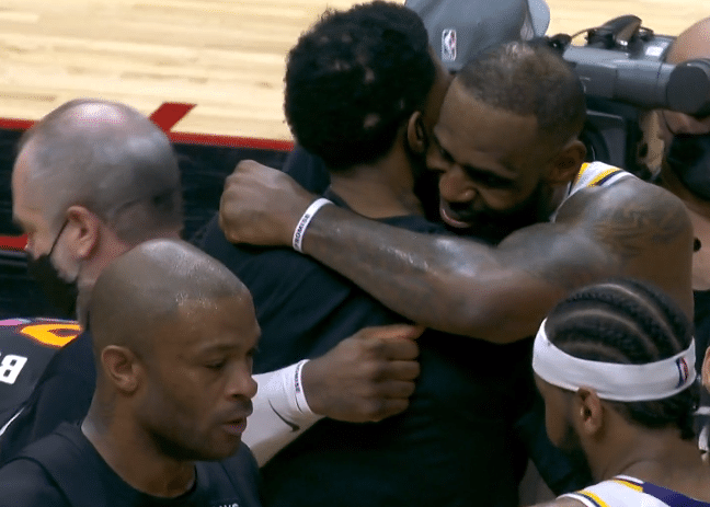 湖人输球后,老詹笑着拥抱热火将帅,与斯帅等多人有说有笑聊开心
