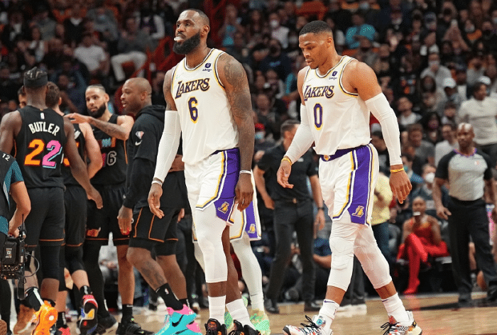 来源:JRS直播网01-24 14:17JRS直播网01月24日讯,湖人客场6分惜败热火,37岁詹姆斯出战40分钟22投12中、三分8中1拿到33分11篮板4助攻,多次暴扣虐筐,第一节命中3分后外线连续7投打铁,惨遭阿德巴约血帽,末节老詹继续带队反扑,无奈生死时刻,塔克边线发球失误从而葬送比赛。
