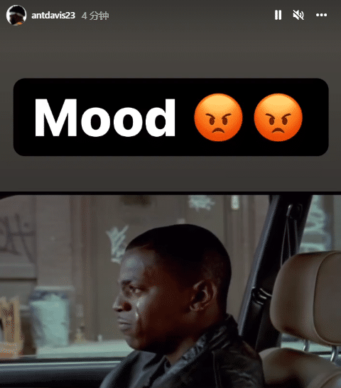 来源:JRS直播网01-23 14:38JRS直播网01月23日讯 NFL季后赛,绿湾包装工队10-13惨遭旧金山49人压哨绝杀从而被淘汰出局,无缘决赛争夺冠军,看到这样的扎心战果,湖人巨星安东尼-戴维斯又伤心了,在Ins上晒出苦练表情包,配文:心情(两个愤怒的表情)。