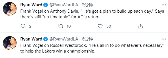 沃格尔还表示浓眉正在按计划进行训练,目前还没有浓眉复出的具体时间表。