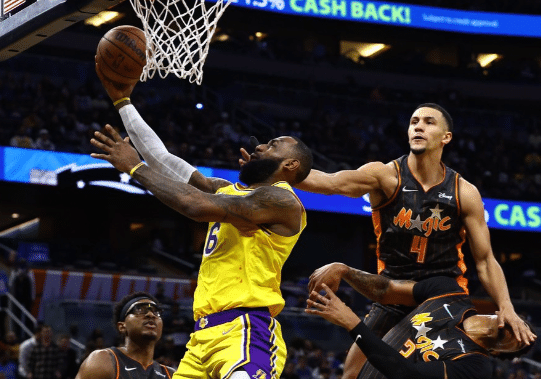 第二节8分30秒詹姆斯下场休息,5分17秒重新上场,并且命中三分球,不过之后湖人进攻哑火,被魔术打出16-2攻势,半场打完湖人54-62落后8分;期间塔克凶狠放倒萨格斯吃到一级恶意犯规。