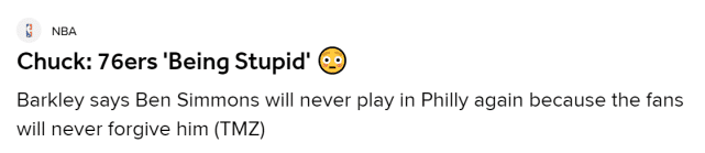 巴克利怒斥76人愚蠢!直言球迷不会原谅西蒙斯:快给火箭打电话