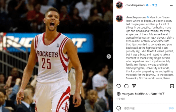 帕森斯正式官宣退役!狂赚1.27亿,晒照深情告别:进NBA是唯一梦想