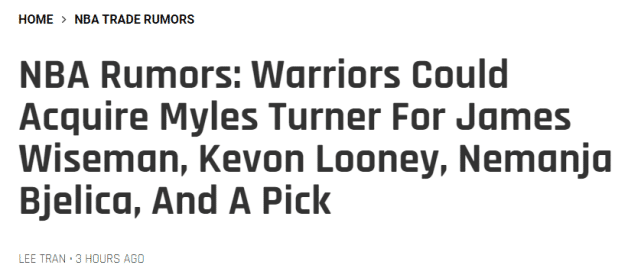 勇士也能抢特纳?美媒列4换1交易方案:中锋升级水花再冲冠