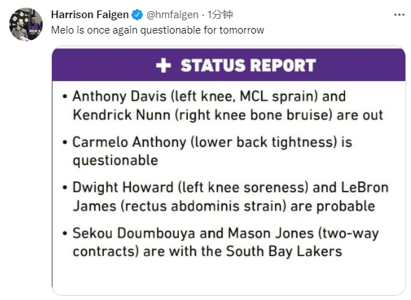 湖人官宣伤情!5名球员有伤詹皇大概率出战,惨败后喝红酒看比赛