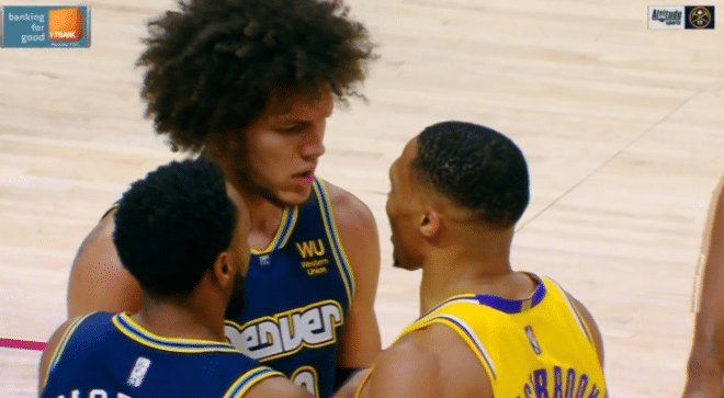 来源:JRS直播网01-16 15:03JRS直播网01月16日讯今天NBA常规赛开始了一场焦点战,湖人客场挑战掘金,上半场湖人落后13分,下半场一度缩小差距,但约基奇把握机会,继续扩大优势。到了第三节,此役表现不佳的威少还和戈登起了冲突,一时还引发了两队球员围在一起。
