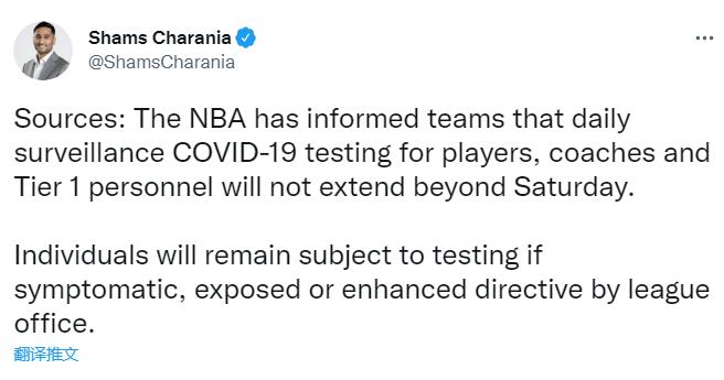 根据安排,NBA将在当地时间周日开始,正式取消对于球员、教练以及工作人员的日常检测。取而代之的是,只有当有人出现症状时或者明确成为密切接触者时,他们才会去进行检测。这一措施,效仿的是上赛季NFL。对于NBA来说,他们要接受这一措施带来的后果!